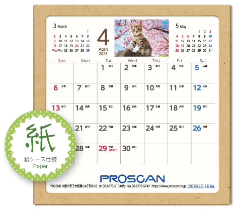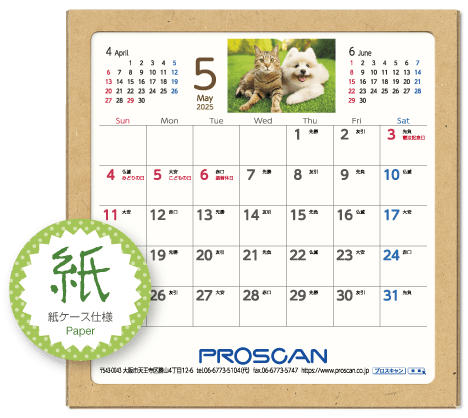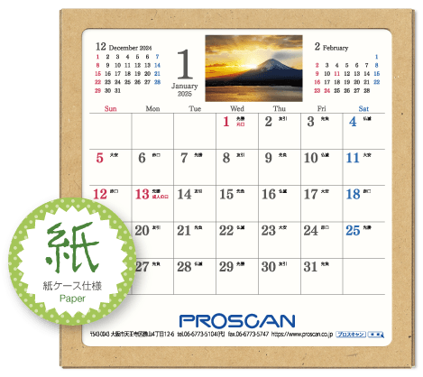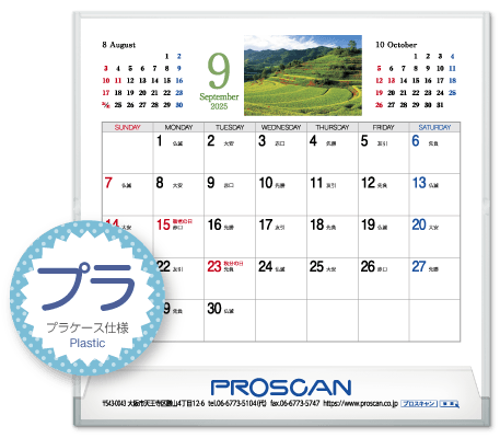 毎年、好評の卓上カレンダー。デスクトップでじゃまにならず、見やすい大きさです。社名も刷込むことができます。「2025年版」全14種類。絶賛発売中です。