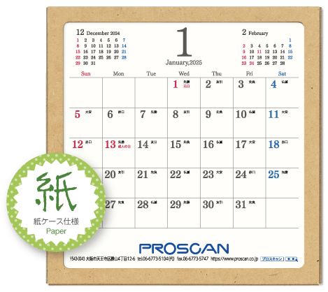 紙ケース、MEMOタイプ、六曜選択、前後月あり