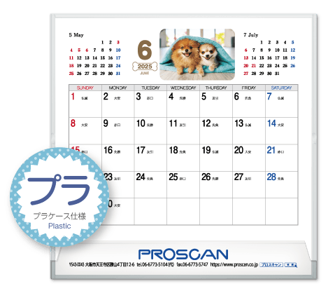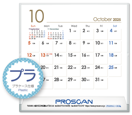 プラケース、MEMOタイプ、六曜選択、前後月あり