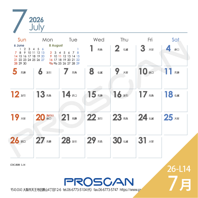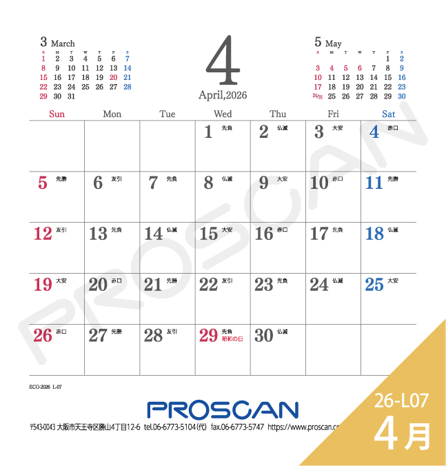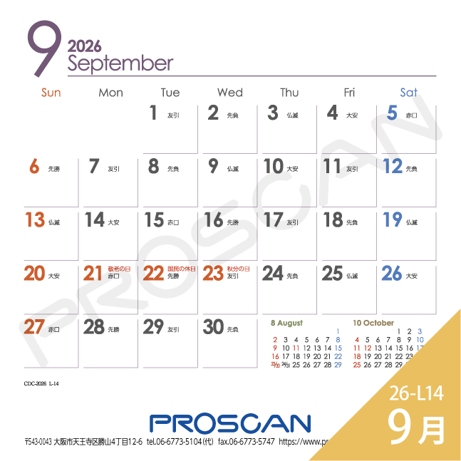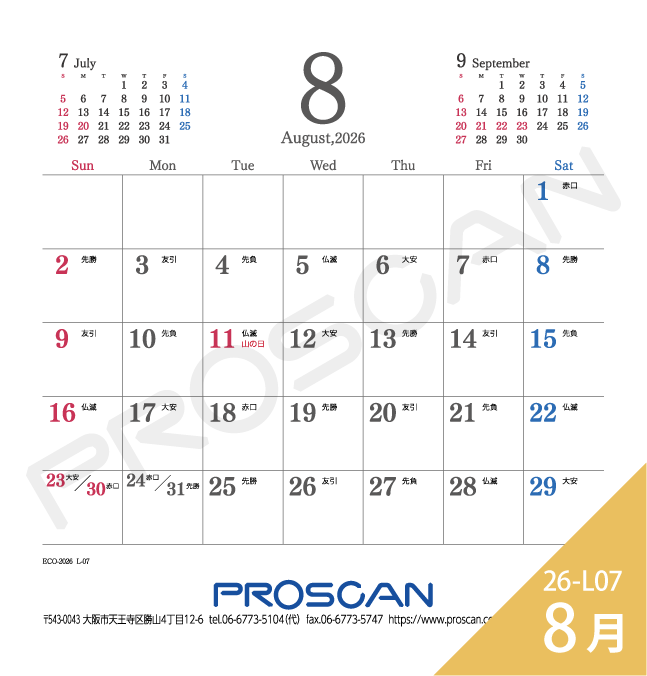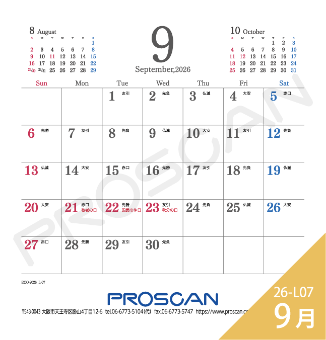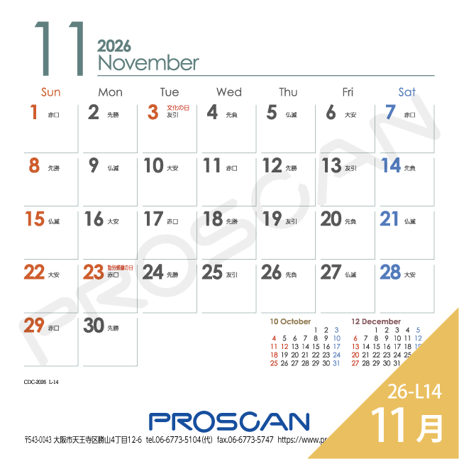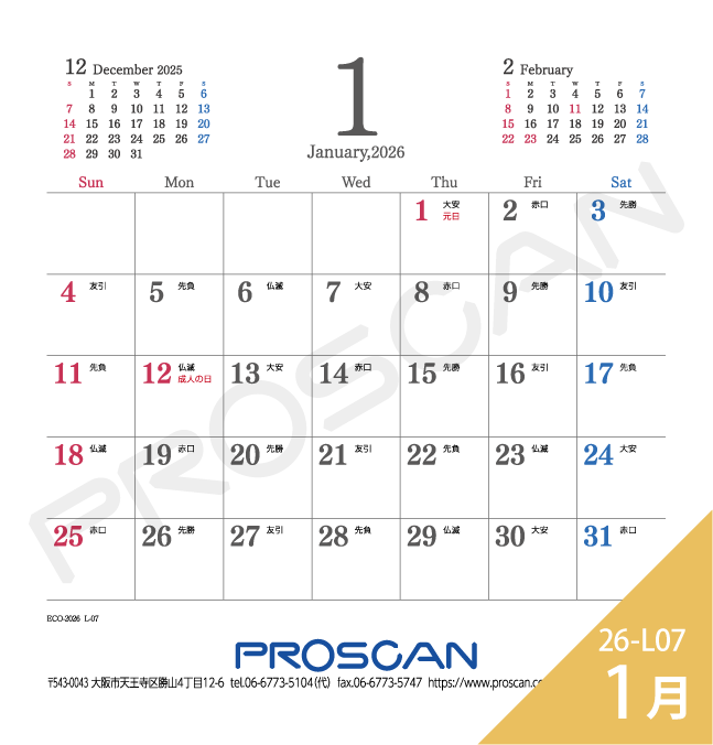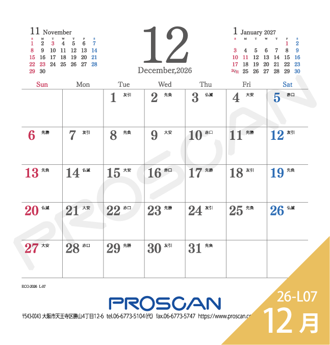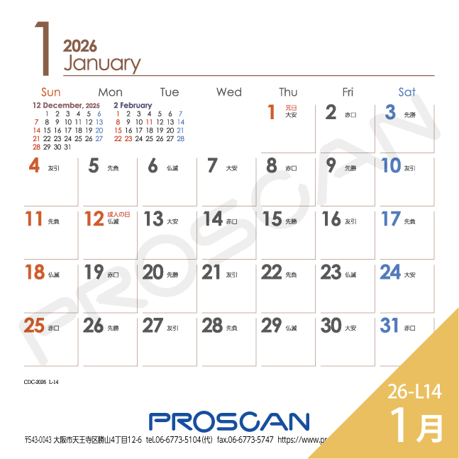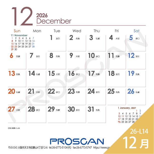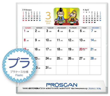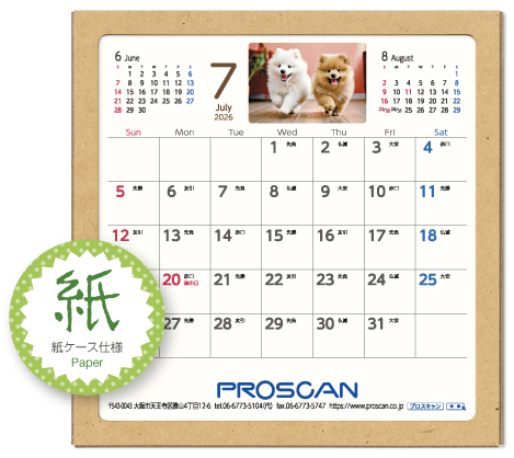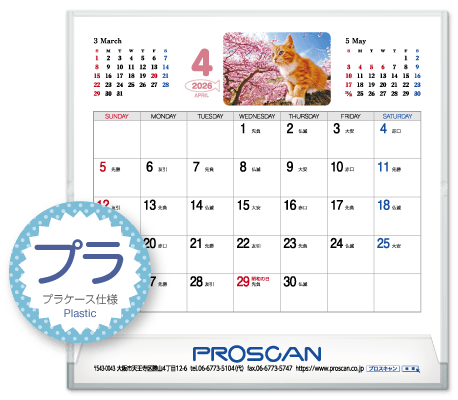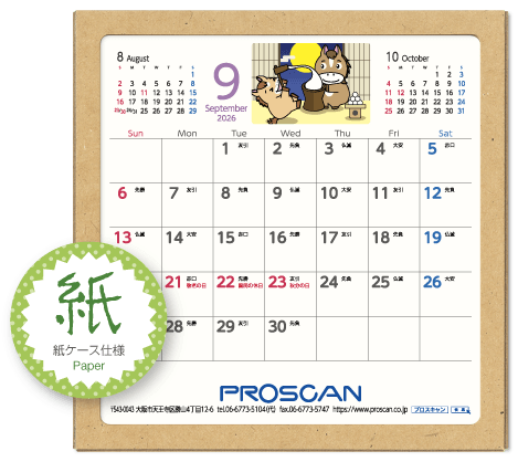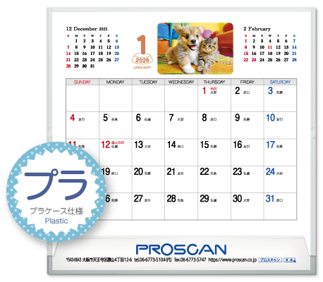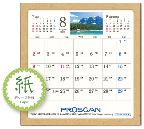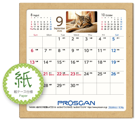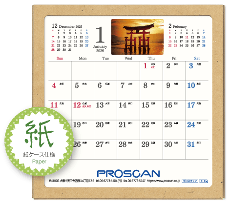 毎年、好評の卓上カレンダー。デスクトップでじゃまにならず、見やすい大きさです。社名も刷込むことができます。「2026年版」全14種類。絶賛発売中です。