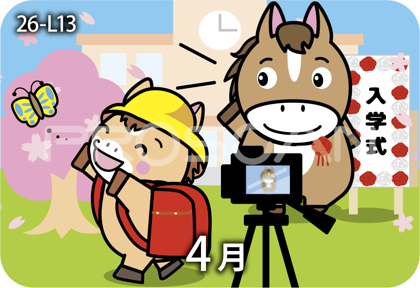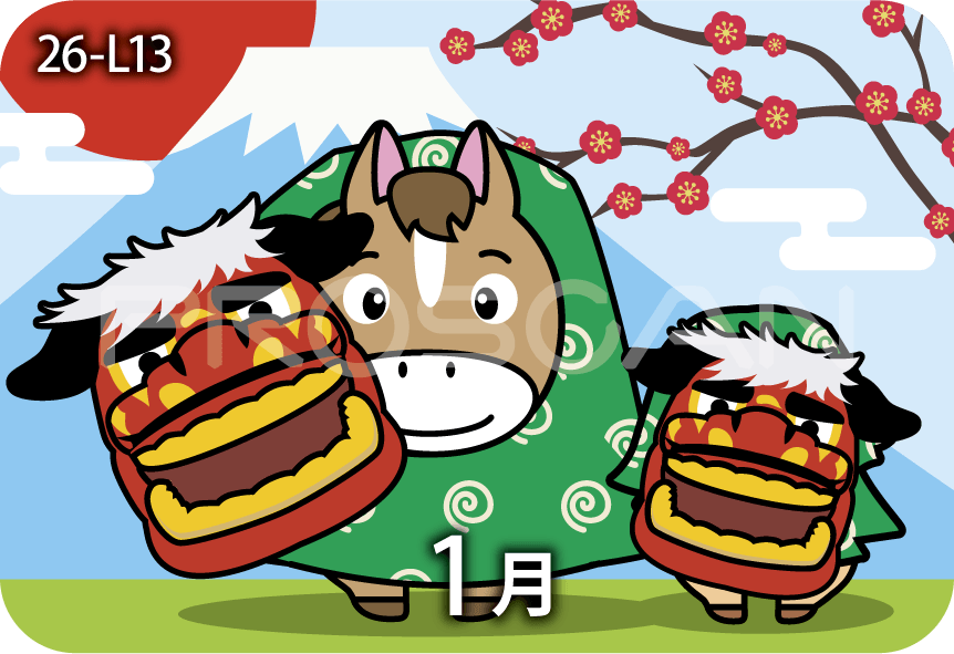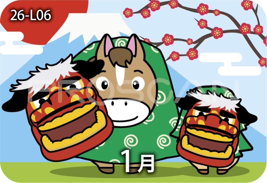 2026年の干支、「うま」のイラスト入りカレンダーです。