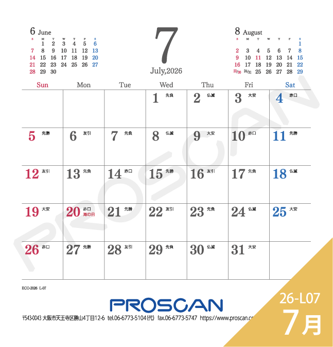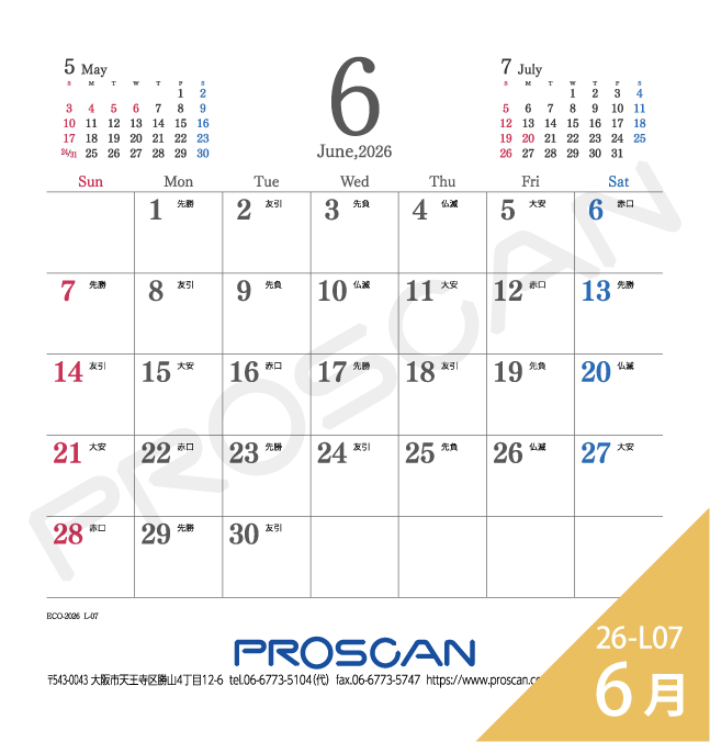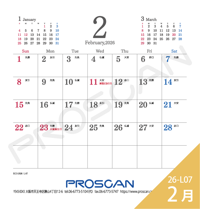 プラケース、MEMOタイプ、六曜選択、前後月あり